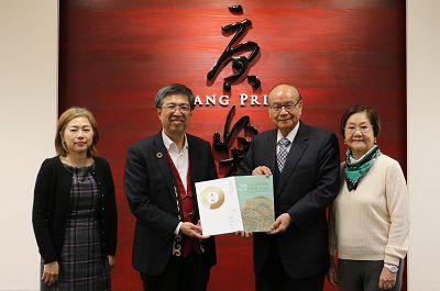 中華文化藝術總院院長、中華學術文教基金會董事長高崇雲講座教授偕同基金會王海倫執行長於3月3日下午兩點專程前往八德路中崙大樓2樓唐獎基金會參訪,受到陳振川執行長、胡茵茵處長等領導熱烈的歡迎。