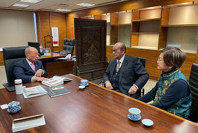 中華文化藝術總院院長、中華學術文教基金會董事長高崇雲講座教授偕同基金會王海倫執行長於元月2日上午10:30專程前往台灣商業聯合總會拜會張平沼總會長,受到張總會長及吳宥霖秘書長等商業領導熱烈的歡迎。高總院長首先表示對張總會長的敬佩之意,他說:「張總會長曾經擔任過教師、法官、立法委員及中華民國商業同業公會理事長,對國家的建設與發展以及兩岸暨國際的交流有重大的貢獻,是海內外全球華人均讚嘆的企業暨政界大老,非常值得各界肯定與尊敬」。