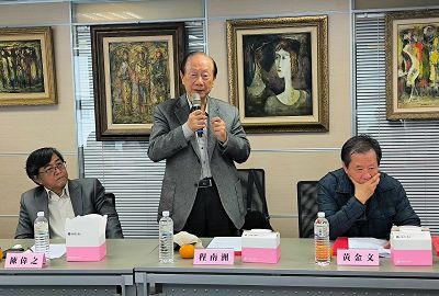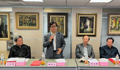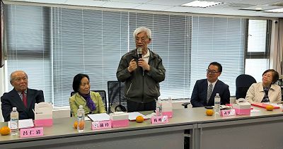 與談人玄奘大學新聞學院前院長陳偉之教授發言。左為王正典副總院長、右為程南洲前校長、左一為黃金文前董事長