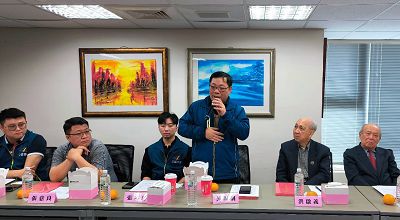 企業界代表黃振綱理事長發言。其左為張意良、蔡文登、張玲玲等青年企業家