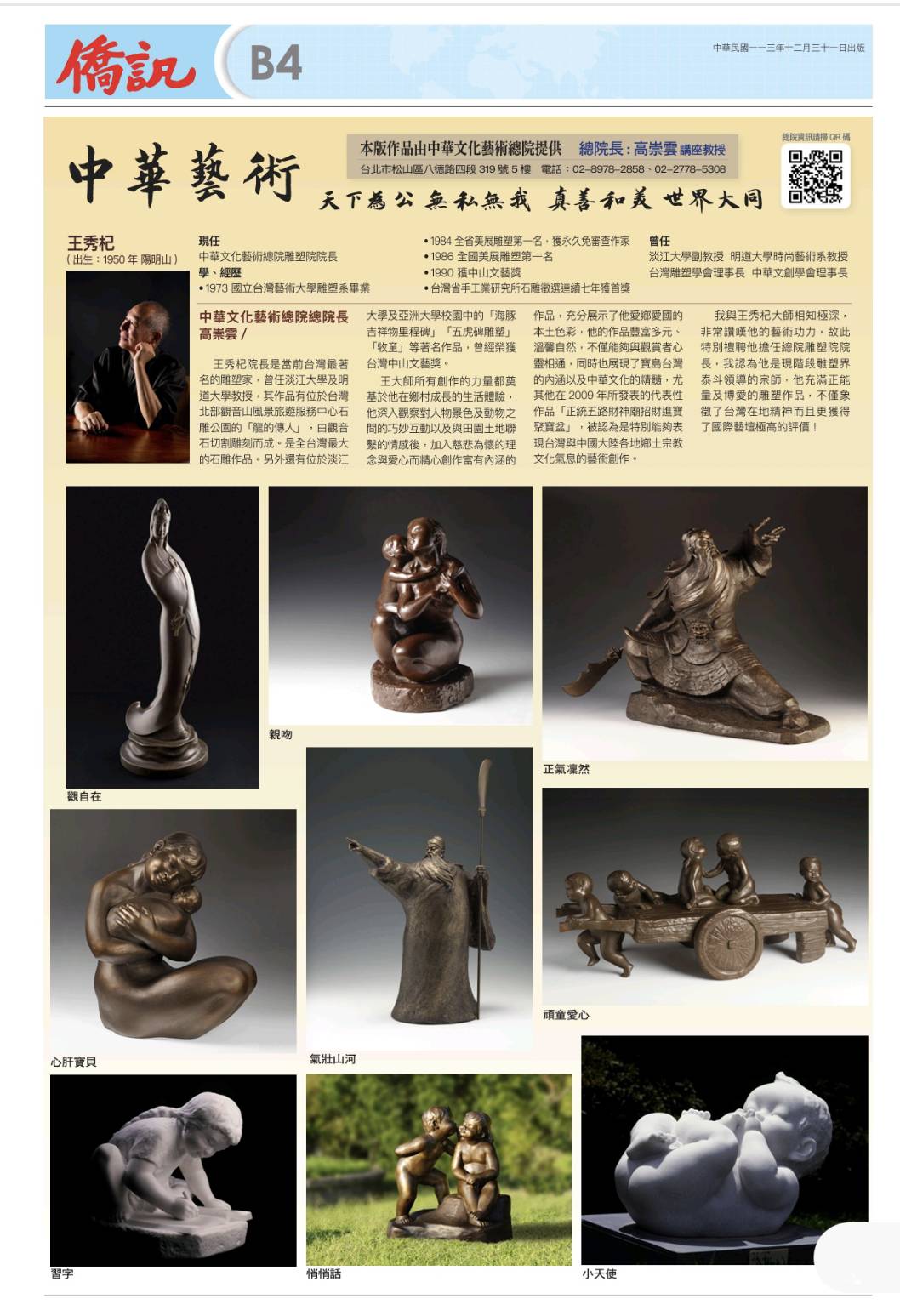僑訊月刊第1486期發表總院雕塑院長王秀杞代表作