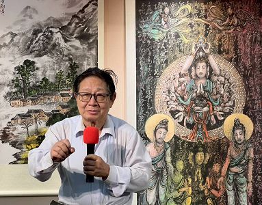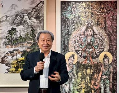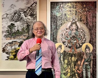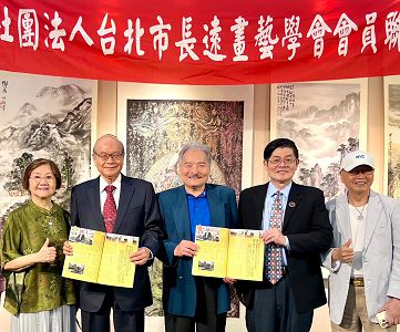 中華學術文教基金會董事長、中華文化藝術總院院長高崇雲講座教授與總院國畫院院長、長遠畫藝學會創會黃慶源理事長、總院院務委員、長遠畫藝學會現任魏宗德理事長於4月12日下午兩點半在台灣圖書館雙和藝廊共同主持會員作品大展致詞,當天包括中華學術文教基金會王海倫執行長、袁天明理事長、麻念台理事長、潘淑梅理事長、周龍修理事長等數十位藝文界領導及藝術家踴躍出席,氛圍熱烈!
