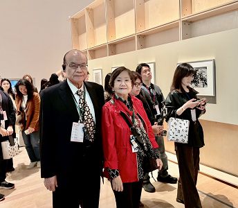 中華學術文教基金會董事長、中華文化藝術總院院長高崇雲講座教授偕同基金會王海倫執行長、亞太陶藝文創協會楊乃翰理事長、美學及陶瓷藝術大家郭博洲教授、陶瓷專家梁成福醫師等一行五人於4月25日上午10:30專程前往新北市美術館出席開幕典禮並進行參訪。當天嘉賓雲集,包括新北市侯友宜市長、文化部李靜慧政務次長、新北市美術館賴香伶館長等全台藝文界領袖及藝術界菁英約500人出席,場面盛大、氣氛熱烈。高總院長表示:侯市長致詞精彩,除敘及美術館創建的艱辛過程外並嘉勉賴香伶館長及劉和然董事長的勤奮努力!身為中國國民黨核心領導的侯市長對文化藝術的重視與貢獻深值肯定與讚揚。而文化部政務次長的發言中肯,充分展現了執政黨宣揚藝文的決心與魄力!而擔此重責大任的賴香伶館長曾經是民眾黨的代表人物,因此今天的氛圍實在不比尋常,而不分藍綠白的各界菁英均不遺餘力的共同宣揚傳統文化藝術!此種狀況實在可圈可點,且可成為當前超越各黨派紛爭從而淨化社會人心,成為共同愛台灣的最佳典範!高總院長強調:「時值當前世局動盪、美國川普政府所提出的關稅政策必將引起波濤洶湧大迴響之際,吾人如何因應才是當務之急,而此時此地新北市美術館的成立所展現的團隊合作,值得國人參考,大家如果能夠同心協力以和平和諧為契機作為出發點,祛除戰爭與內鬥的意識形態,則必然可以開啟未來的坦途,一起共創台灣美好的未來!」