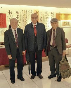 中為高董事長、左為呂仁清展出者名書法家、右為陳克謙名書法家