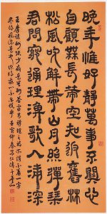 呂仁清教授書法多年,也曾任中華民國書法教育學會理事長,前往菲律賓等國講學,舉辦多次展覽,更獲教育部多項大獎,頗得文化教育界人士的讚揚。呂仁清教授早年師事書法前輩大師謝宗安,以漢隸入手,奠下紮實基礎,後習古篆及北碑,終於融會貫通,自成一家風貌,更成為一代宗師,本人於民國八十年至八十六年擔任國立國父紀念館館長期間,曾邀請謝宗安及呂仁清師徒兩位方家負責評審書法比賽作品,加以住所相鄰,互動良好,相知甚深,了解呂教授研注書法廣泛,汲取各家之長,其書法以陽剛拙樸兼具雄健之美,尤以線條的表現已達到爐火純青的境界。