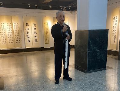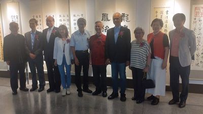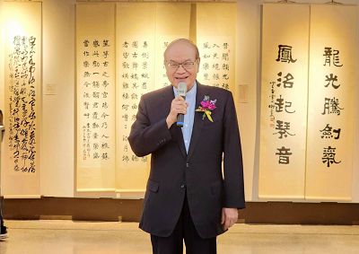 中華學術文教基金會董事長、中華文化藝術總院院長高崇雲講座教授偕同基金會王海倫執行長、總院書法院楊旭堂院長應中華書道學會郭彩萍理事長的邀請,於6月14日下午兩點半專程前往台灣藝術教育館展覽廳出席國際邀請暨會員書法聯展。當天貴賓雲集,包括立法院前院長游錫堃、台灣藝術教育館李泊言館長、書法大師杜忠誥、陳維德、陳嘉子、國美基金會顏金蘭執行長、教育部國教署吳清山前署長、華梵大學黃智陽院長等百位藝術家出席盛會,場面熱烈、氛圍溫馨。