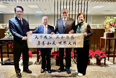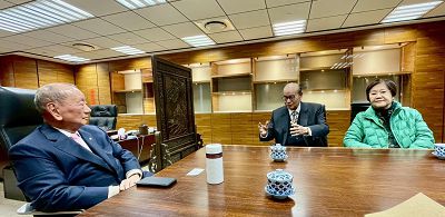 中華文化藝術總院院長、中華學術文教基金會董事長高崇雲講座教授偕同基金會王海倫執行長於元月2日上午10:30專程前往台灣商業聯合總會拜會張平沼總會長,受到張總會長及吳宥霖秘書長等商業領導熱烈的歡迎。高總院長首先表示對張總會長的敬佩之意,他說:「張總會長曾經擔任過教師、法官、立法委員及中華民國商業同業公會理事長,對國家的建設與發展以及兩岸暨國際的交流有重大的貢獻,是海內外全球華人均讚嘆的企業暨政界大老,非常值得各界肯定與尊敬」。
