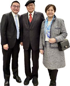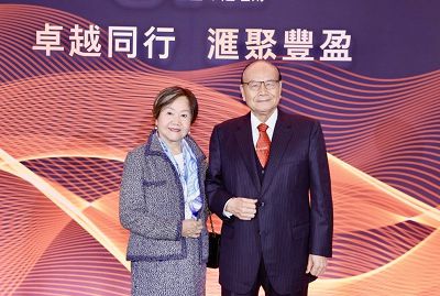 在文華酒店匯豐晚宴中,高崇雲總院長(中)與台灣匯豐銀行胡醒賢副總經理(左)合影,右為王海倫執行長