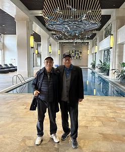 高總院長與鄭董事長在渠所居大樓游泳池畔合影
