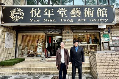 施輝煌董事長、高總院長合影於悅年堂藝術館大門