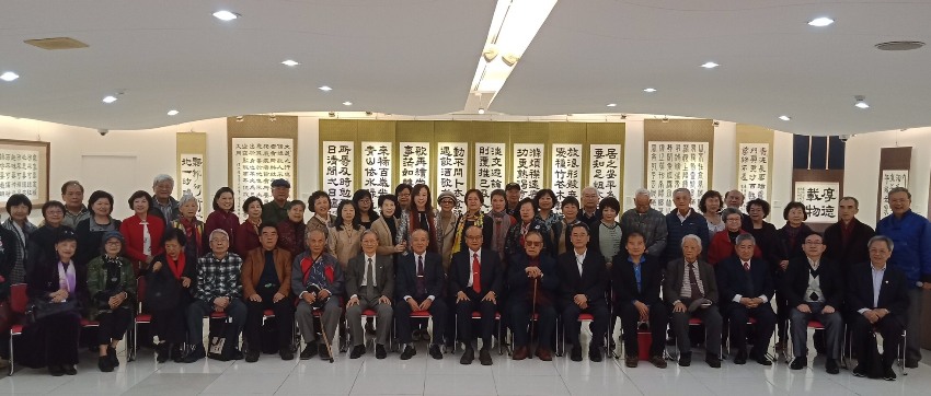 中華學術文教基金會董事長高崇雲在全全體合照中(前排右八)及名書法家呂仁清(右九)。中華學術文教基金會/提供