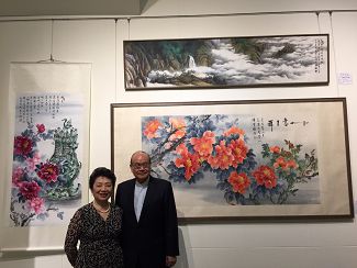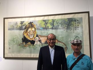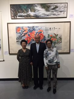 高崇雲董事長與著名書畫家包容攝於其代表作前