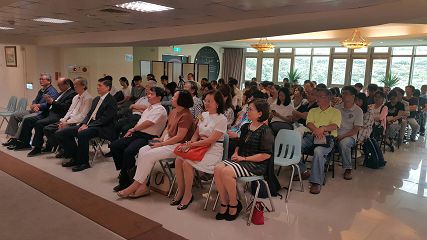 第一排最右邊的是中華科技大學劉鎔毓學務長,中為郭承亮校長,中左為陳揚春大師、左二是高崇雲董事長,最左邊的是林信耀處長!