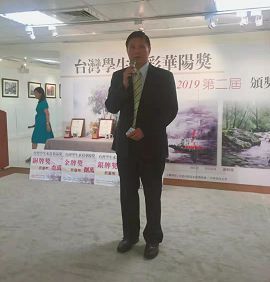 高崇雲董事長於本年7月15日上午10時應中華科技大學的邀請,出席在該校福華大樓11樓藝文中心所舉辦的臺灣學生水彩華陽獎頒獎典禮,高董事長與中華科技大學校長郭承亮教授、臺北市藝文推廣處處長林信耀博士,以及水彩畫大師陳陽春等藝術家相談甚歡。
