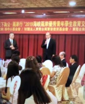 東莞台商子弟學校董事長、中華海峽兩岸炎帝神農文化交流協會理事長葉宏燈於7月16日晚上6時在圓山飯店富貴廳,以晚宴款待由廣東孫中山基金會副理事長李萍所率領的64位教授學生參訪團。