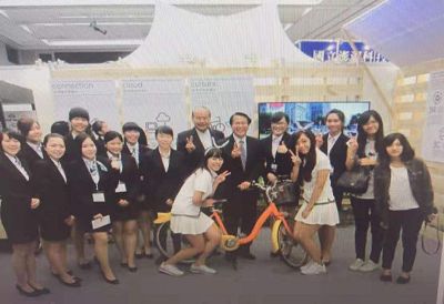 徐校長左邊是高董事長,再左邊是謝碧鳳主任,那年得到獎項甚多,謝主任功不可沒!謝主任旁邊就是現任的林聖偉系主任,他們兩位系主任為德明參加國際城市會展競賽貢獻良多!