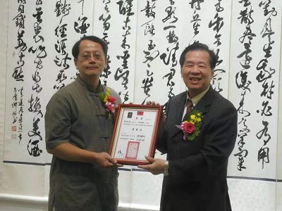 欣逢中華九九書畫會20周年之慶,本會高崇雲董事長正在國外考察,所以特別請副董事長陳光憲代表出席,向九九書畫會致賀,本會黃金文董事、程南洲董事、陳偉之董事、查重傳董事、李威侃董事等出席開幕暨頒獎。