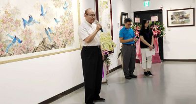 高崇雲董事長於8月2日上午10時,偕同中華東方茶文化藝術學會王淑娟理事長一行,前往新北市樹林圖書館出席雲墨藝林林裕淳、吳美雲雙聯展!會中高崇雲董事長除代表貴賓首先致辭外,並與兩位展出者相談甚歡,高董事長、林裕淳名畫家及王淑娟理事長,經常聯合舉辦藝術活動來推動社會的淨化。