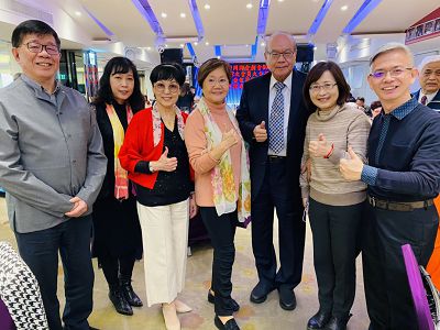 右起僑協總會溫淑芬理事、高董事長伉儷、黄信麗理事長、潘英穗董事長、黃東祥理事長