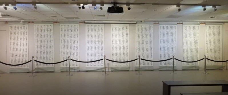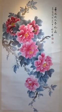 高董事長強調:包教授精研水墨畫五十多年,尢其專精牡丹畫作及書法創作,此次更展出14條幅的老子道德經書法。足見她在書法方面的精深功力!