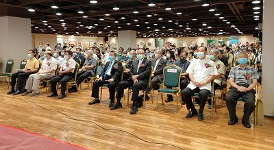 第一排左起王蘭生館長、洪孟啟前部長、麻念台理事長、王正典理事長、高崇雲董事長、王詣典將軍、孫宜成將軍
