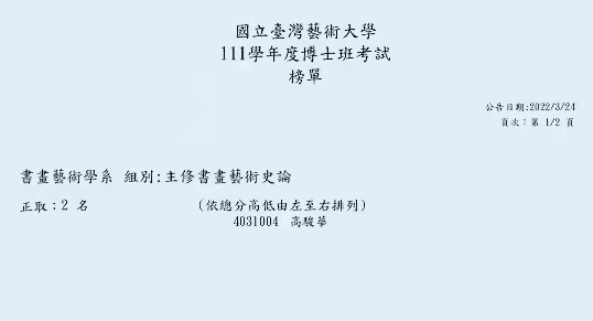 本會高駿華董事以優異成績考上臺灣藝術大學博士班,值得肯定,值得讚揚,更值得慶賀!