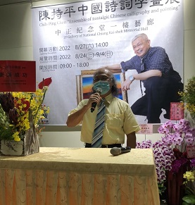 中華學術文教基金會董事長、中華文化藝術總院總院長高崇雲偕基金會執行長王海倫,於8月27日下午2時前往中正紀念堂一樓藝廊,出席名醫畫家陳持平詩詞書畫展。