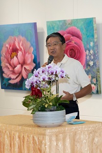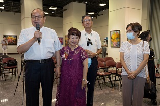 高總院長一行原於當天下午2時參與名醫書畫家陳持平詩詞書畫展,應邀擔任致詞貴賓,剛好同一時間與康寧大學馬西平副校長喜相逢,馬副校長是陳秋玉油畫展首席貴賓,經他介紹高總院長又為陳秋玉畫展作了簡短的致詞。