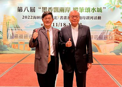 中華學術文教基金會董事長、中華文化藝術總院總院長高崇雲教授於11月19日上午10時偕同基金會王海倫執行長、美學教育委員會黃明櫻主委,一同出席在張榮發基金會6樓國際會議廳所舉辦的「第八屆“墨香飄兩岸 縱筆頌水城”2022海峽兩岸(聊城)書畫名家共繪母親河書畫精品展」。