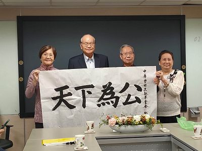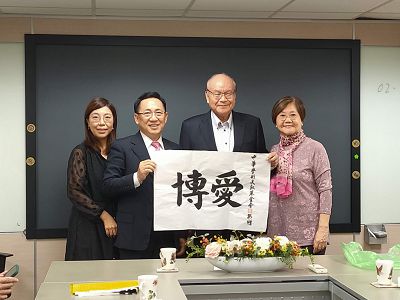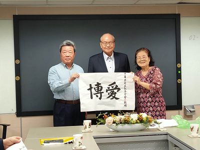 這項主張獲得與會全體人士的支持!來訪的張常務理事、楊校長、鍾董事長、舒監事、朱理事、黎理事長等貴賓均即席致詞,內容都極為精彩!大家全力進行腦力激盪,發表意見,最後獲得許多共識!座談氣氛良好,可以說是相談甚歡。高總院長並以中華學術文教基金會名義贈送所有貴賓墨寶乙幅,藉茲留念!