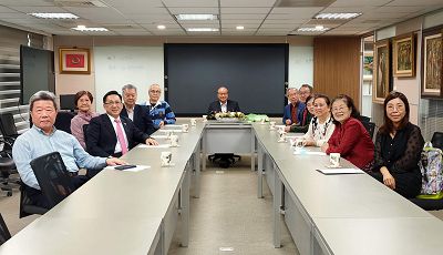 旅居美國洛杉磯僑聯總會張學海常務理事、舊金山驕陽中英雙語學校楊昆山校長伉儷、僑聯總會舒立彥監事、朱國琴理事、緬甸曼德勒鍾順昌董事長伉儷、雲南同鄉會黎順發理事長伉儷等一行九人於12月2日上午10:30分連袂參訪本會。受到高崇雲董事長兼總院長、王海倫執行長、王正典副總院長、秘書室黃素珠主任等本會同仁熱烈的歡迎。