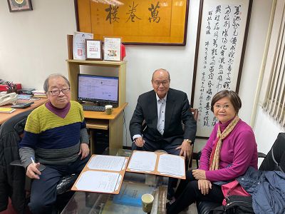 中華學術文教基金會董事長、中華文化藝術總院總院長、國學書院院長高崇雲講座教授偕基金會王海倫執行長於1月11日上午十時專程前往萬卷樓圖書公司拜會負責人梁錦興總經理,受到他與張宴瑞總編輯及楊佳穎小姐熱烈的歡迎!雙方隨即進行座談交流並簽署「龍行天下台灣領航」新書出版契約。當天在良好氛圍下達成共識,今後將成立策略聯盟全力加強合作,一起為宣揚傳統文化與振興學術貢獻心力。