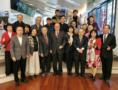 左起名書畫畫家張松蓮、盧逸儒、高總院長、呂仁清名書畫家、張萬興總會長、後排是潘慧敏理事長