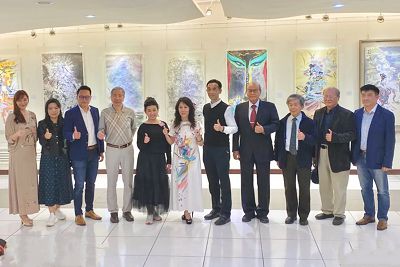 中華學術文教基金會董事長、中華文化藝術總院總院長高崇雲講座教授於2月5日下午二時偕同基金會王海倫執行長、李威侃董事出席在國父紀念館德明藝廊展出的「日新越藝孟昭光個展」,包括阿默企業集團董事長周正訓、台藝大羅振賢教授、台北記者公會理事長郭慶璋等兩百餘位藝術愛好者共同參與,可以說是嘉賓雲集、熱鬧非凡。