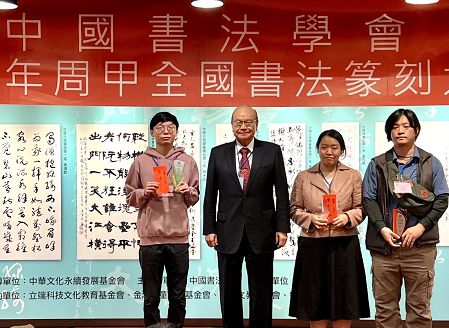高總院長最後說,中國書法學會在書法界的地位極高,而且有連勝彥大師及陳銘鏡理事長等卓越的領導,相信必能開創書法的新領域!本人深切盼望在座所有的藝術家,大家團結一致,共同把中華文化藝術中的瑰寶,也就是書法使其發揚光大,讓中華書法能夠巡行全球,成為代表中華傳統文化的核心瑰寶,本人呼籲在座的所有藝術家,都應該責無旁貸地共同鐵肩扛道義,一起來完成振興中華的神聖使命!