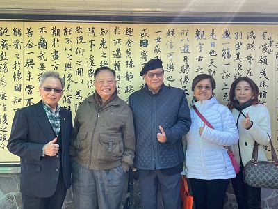 中華學術文教基金會董事長、中華文化藝術總院總院長高崇雲講座教授偕基金會執行長王海倫於2月19日上午10時應蔡淑惠理事長邀請專程前往位於新店的「漢字書藝文化館」拜會負責人吳朝滄理事長,受到吳、蔡兩位理事長及新北市淨心書會會長何正一、書藝文化學會理事長林金豐等名書畫家熱烈的歡迎,該文化館坐落於新店海拔300公尺遠眺台北盆地的廣興山頭,視野無限,山水景色極佳,園中興建山廬乙座,並以古色古香丈餘高牆圍繞,高牆上懸掛石刻墨寶250面,並以活動裝卸方式定期展出古今書法大師的精彩作品。
