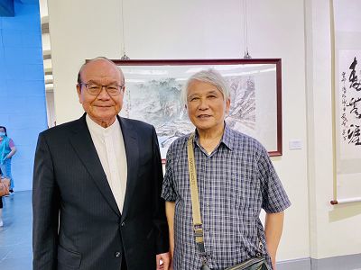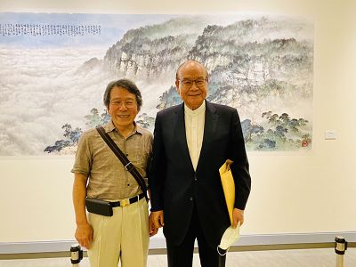 高崇雲總院長與蘇峯男大師合影於中山國家畫廊畫展現場