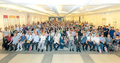 右為張連興總會長、右三為連大師、右四李可梅大師、中為高總院長、中左為王海倫執行長、其左為游素珠副理事長、最左為李德珍理事長
