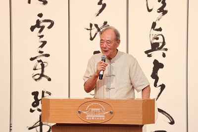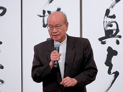 高總院長致詞表示:連勝彥大師為我國極富盛名的書法泰斗大宗師,現任中國書法學會及澹廬書會名譽理事長,此次係第三度在國父紀念館中山國家畫廊舉辦個展。這位現年86歲的書法宗師在畫展中展出了極為精彩的創作,連大師在海內外及國際聲望崇隆是我國國寶級藝術家,連大師畢生悠遊於翰墨、各體兼備、古雅韻生,而重根基勤修德直至詩書交融、道志合一、品藝交輝,因此備受國人尊崇,特別值得一提的是連大師與其才華洋溢之女公子連瑞芬聯手展出瓷刻架構最具藝術傳承的意義!