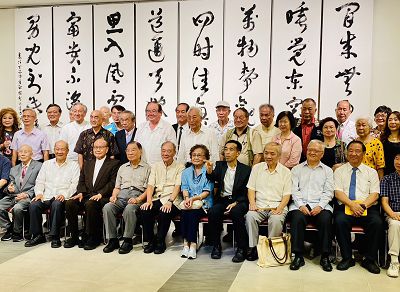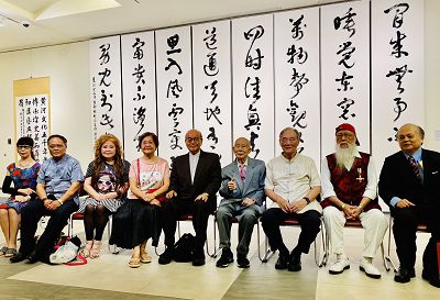 5右起救國團主任葛永光、救災總會張正中理事長、書法大師張穆希、國父館王蘭生舘長、連勝彥大師伉儷、陳金讓國大前議長、高崇雲總院長、黃昆輝前總統府秘書長、李可梅大師