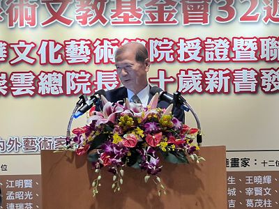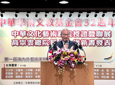中華學術文教基金會32周年慶、中華文化藝術總院頒發聘書及名家展覽、高崇雲總院長80歲新書發表等三項重大活動聯合儀式,日前在張榮發基金會舉行,冠蓋雲集,氛圍熱烈。
