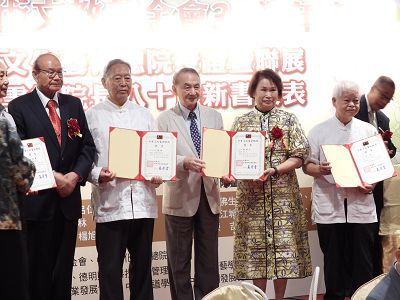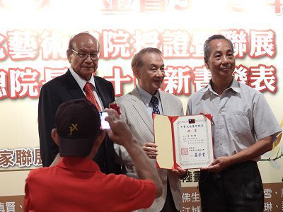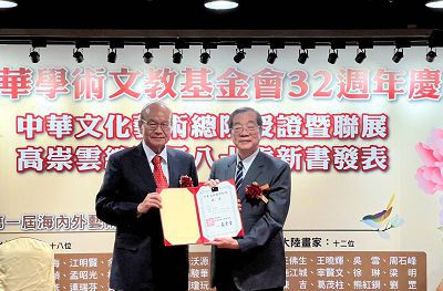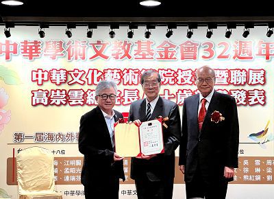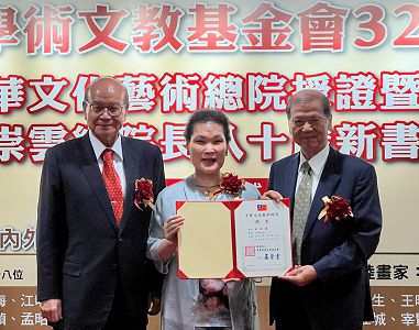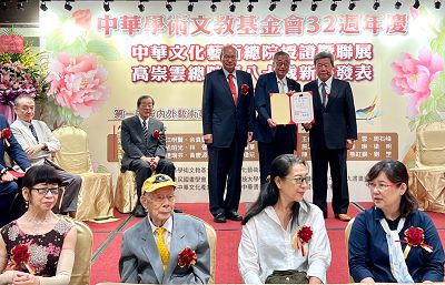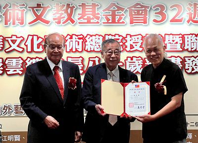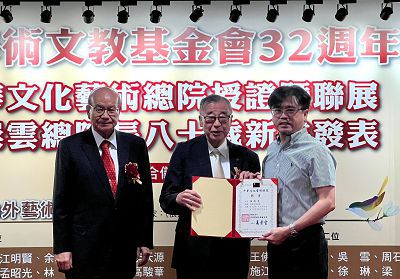 9月28日教師節,中華學術文教基金會與中華文化藝術總院聯合舉辦32周年慶、頒證暨展覽及新書發表三項重大活動,邀請到考試院黃榮村院長、廖了以前總統府秘書長、教育部楊朝祥前部長、國防部伍世文前部長、中原大學張光正董事長、聖約翰科技大學唐彥博校長以及中國文化大學王志誠副校長等七位文教領導蒞臨致詞暨頒證,藝文各界領袖超過200位出席共襄盛舉,見證了總院所屬十位院長、十二位院務諮詢委員及六位顧問分別獲得榮銜的場景。