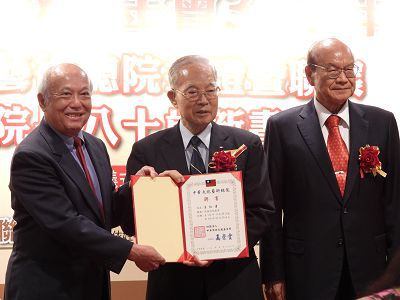 總統府廖了以前秘書長頒發連勝彥院士聘書