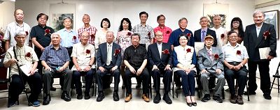 第一排最右邊為孫迪總顧問、其左為孫宜成將軍、高仲源將軍、主辦人王正典理事長、高崇雲總院長、雷倩主任委員、李可梅大師