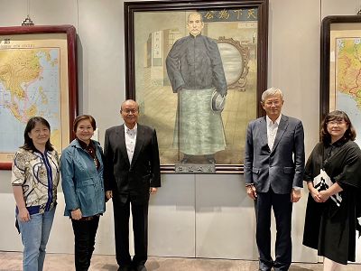 在華岡博物館合影,右起李婉慧館長、王志誠副校長、高崇雲總院長、王海倫執行長、劉館長