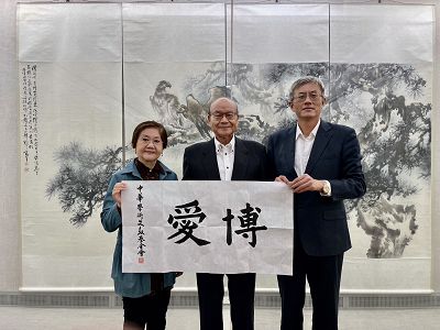 中華學術文教基金會董事長、中華文化藝術總院總院長高崇雲講座教授於10月11日偕同基金會王海倫執行長由中國文化大學歐豪年美術館館長李婉慧陪同參訪。高總院長伉儷首先參觀歐豪年美術館並接受華夏導報記者訪問,暢談與歐大師相識相知的過程,高總院長對歐大師極為敬佩,認為他不僅是當代台灣藝文領導宗師,而且在全球各地享有盛譽,是世界國際級的藝文泰斗!中國文化大學王志誠副校長稍後來到現場與高總院長對談,兩位學界領袖曾經在教師節當天共同出席一項重大會議因此熟識,王副校長並親自陪同高總院長等同仁參觀華岡博物館,在該館劉館長熱心解說之下,已經能充分瞭解所有館藏的精彩內容,王副校長多才多藝,不僅擁有精湛的法學素養,而且對於藝術方面也有高人一等的看法!