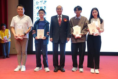 書法院長楊旭堂(中)、林亮吟理事長(中左)與得獎者合影