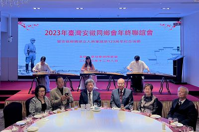 中華學術文教基金會董事長高崇雲偕同董事程南洲、黃金文、黃慶源、孟昭光、張文齊、高駿華及執行長王海倫、秘書室主任黃素珠等一行八人於12月8日特別專程前往鉅星匯參與由基金會副董事長兼安徽同鄉會理事長王正典舉辦的安徽同鄉會年終聯誼會。當天儀式簡單隆重,安徽鄉親及孫立人研究會會員等百餘人踴躍出席。