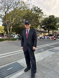 高總院長攝於台南市水交社藝文中心,當地為渠青少年時代的眷村居住地,具有紀念意義
