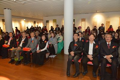 中華學術文教基金會董事長、中華文化藝術總院總院長高崇雲講座教授於元月21日下午二時出席2024年國際書法展暨迎春揮毫大會,此項活動在國父紀念館博愛藝廊由中華書法教育學會林亮吟理事長主辦,國父館王蘭生館長、台北市教育局鄧進權副局長、中華文化藝術總院連勝彥院士、楊旭堂總院書法院長等各界書法大家約300人參加共襄盛舉。